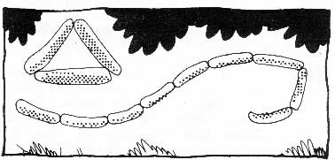 На мясокомбинате в городе Сардельбурге сардельки выпускают длинными связками - они соединены общей оболочкой. Связку из трех сарделек легко превратить в треугольник. Сколько треугольников можно сделать из связки в 9 сарделек, не разрывая ее?
