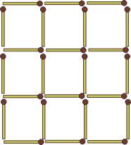 В фигуре, представленной на рисунке, нужно так переложить 6 спичек с одного места на другое, чтобы образовалась фигура, составленная из 6 одинаковых четырехугольников.